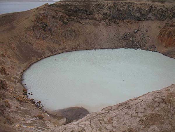 Выезжаем с ночевки в 10 часов. Как и было задумано, делаем два круга вокруг озера: на первом просто едем, на втором останавливаемся и осматриваем разные достопримечательности. Описывать все не стану, их там полно. По дороге в Миватне заходим в магазин и заправляем машину. В 12-30 лезем на удивительный лже-кратер, внешне очень похожий на террикон, под названием Хверфель ((Hverfell).