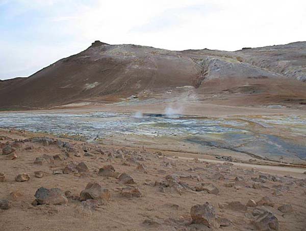 В 20-45 мы проезжаем геотермальное поле в районе Миватн и решаем сразу же его посмотреть. Зрелище интересное, пахнет сероводородом очень сильно.