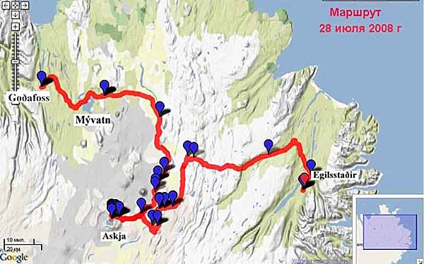 В 13-50 подъезжаем к официальному термальному бассейну в Миватне. Все попытки Володи погнать нас пешком по тропинке к естественному теплому источнику за 1.5 км, к успеху не привели. Кажется, вчера все достаточно находились. Купаемся в термальном бассейне, обедаем в кафе с видом на бассейн.