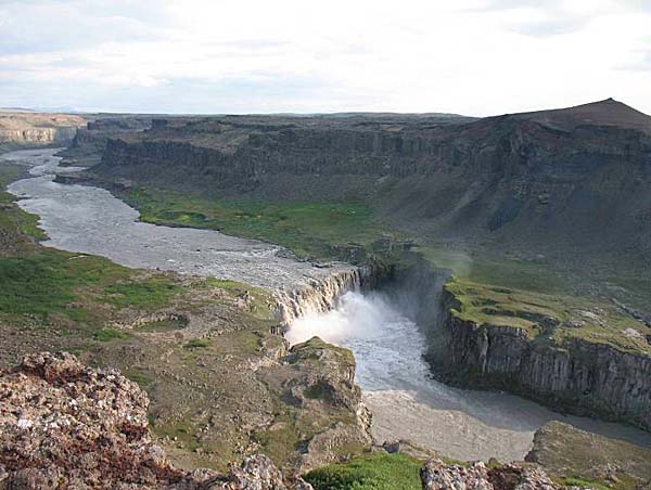 В 16 часов отправляемся к водопаду Детифосс. ( Dettifoss). С дороги №1 решаем свернуть по № 864 ( № 862 что-то нам не показалась). Кстати, Детифосс действительно лучше смотреть со стороны 864-й дороги. 864- грунтовка, очень хорошая. Когда мы по ней ехали, обнаружили поливальную машину, которая ехала и поливала дорогу, чтобы прибить пыль. Правда, поскольку мы уже очень пропылились, то мокрая дорога совсем не способствовала улучшению внешнего вида нашего Чероки.