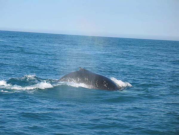 Погода прекрасная, жарко, очень слабенький ветерок, волнения практически нет. Поэтому экскурсия была очень приятной, китов мы насмотрелись, нафотографировали, и одному из китов в ажиотаже погони даже наехали на хвост. По-моему, он очень что-то нехорошее на наш счет сказал.
