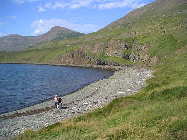 В 14-35 едем обратно на 612 дорогу. Вот здесь на южном берегу фьорда Patreksfjorður мы действительно видим желтый песок (правда при проверке оказалось, что он все-таки не наш обычный кварцевый песок, а что-то другое – м.б.- мелкий ракушечник)