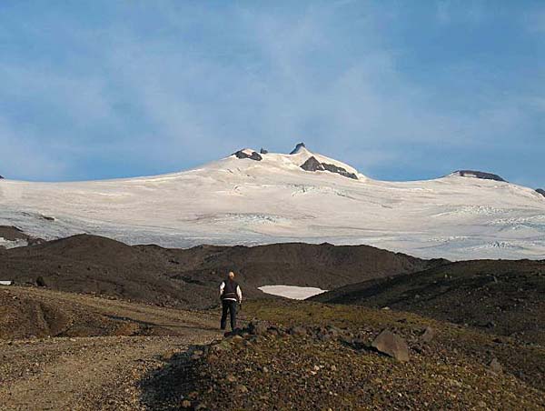 Утром, в холле фермы обнаруживаю плакаты, из которых становится ясно, что мы находимся прямо под вулканом Kafla, который расположен под ледником Myrdalsjokull, и извержение которого ждут в очень скором времени. Говорят, он недавно пытался ожить, но потом снова утих.