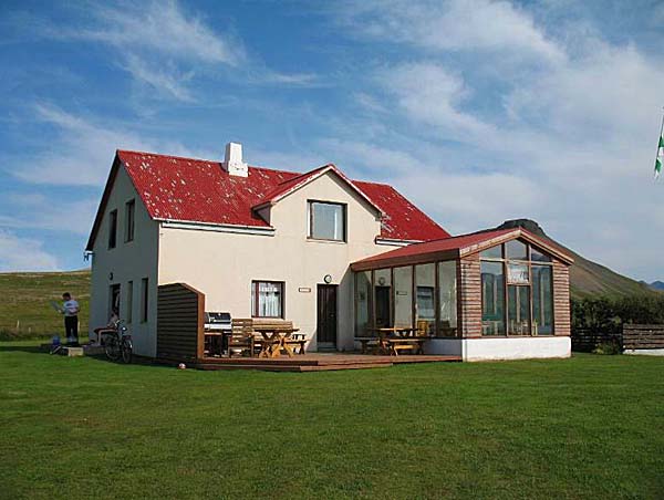 Ферма нас просто поразила: много разнообразных камней, старинная мебель, уют, в садике выложенный из камня прудик. В доме полно разных очень интересных книг (правда, на исландском). Купили у хозяина бутылку вина и вечером в гостиной наслаждались жизнью.