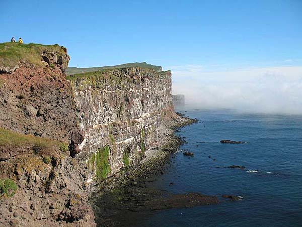 В 15-40 мы на скалах Латрабьрк (Latrabjarg) – самая западная точка Исландии. Судя по описаниям, скалы с максимальной высотой от уровня воды в 440 м тянутся вдоль океана на протяжении 14 км. Поднимаемся к скалам.