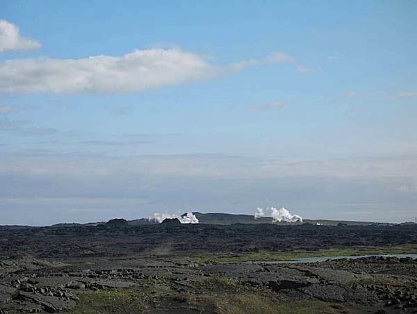 После обеда едем далее, на вулкан Крафла (Krafla). Время 15-40.Смотрим вулкан, на лавовые поля в окрестности Крафлы смотрим из бинокля, идти туда неохота, ничего подобного тому, что мы видели на Аскья, здесь уже нет. Лавовые поля, конечно, большие, но здесь они уже гораздо более мирного вида. Конечно, если здесь ходить пешком по окрестности, то нужно иметь в запасе хотя бы часа три-четыре.