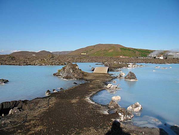 В 18-30 едем в знаменитую Голубую Лагуну ( она расположена на отвороте от 43 дороги), недалеко от городка Grindavik. Степановы идут купаться, мы гуляем по окрестности между лавовых образований и теплых озерков.