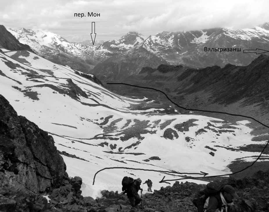 При разработке маршрута за основу был взят маршрут группы НГК (руководитель Михаил Мишин, 2011). Хотим поблагодарить ребят за очень качественный, подробный и полезный отчет (см. www.2alps.ru).