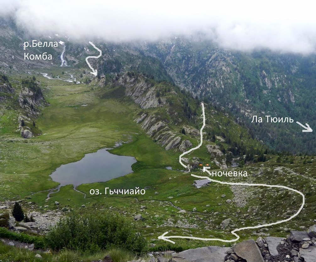 6 июля (7-й день). Озеро Пти –перевал Ташуи (Tachuy) (1А, 2671 м) – озёра и долина Белла Комба (Laghi diBella Comba) – р. Рутор – озеро Гьяччайо (Ghiacciaio)