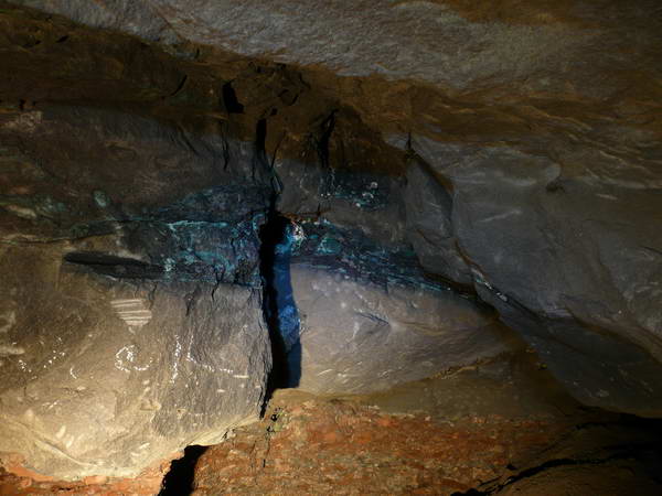 В восточной части рудника имеется место где сохранились гнезда медной руды, и крепи.