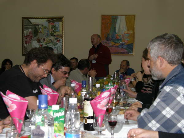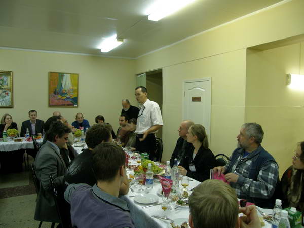 На банкете стихийно продолжались обсуждения докладов, научные дискуссии и неформальное общение участников.