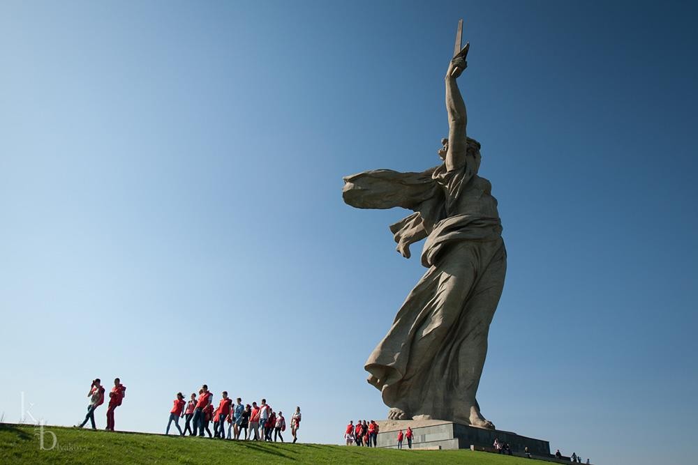 Основным пунктом программы на сегодня был осмотр главной достопримечательности города, Мамаева кургана и Родины-матери. Я не питала каких-то особых иллюзий и вообще не была уверена в том, что меня может как- то впечатлить размер статуи.. Как я ошибалась! Издалека Родина-мать действительно как-то не вызывала особых эмоций, но вот стоило подойти к подножию.. Она действительно огромна! И весь мемориальный комплекс огромен под стать центральной фигуре. Респект и уважуха приступам гигантизма во всех их проявлениях.