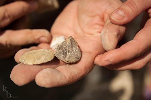 Аммониты – это вымерший подкласс головоногих моллюсков. Грифеи – тоже древние моллюски, раковина которых напоминает клюв грифа. Соответственно тут мы могли обнаружить их окаменелые раковины и отпечатки на камнях.