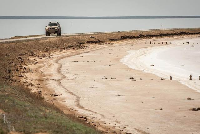 Дальше мы двинулись смотреть на озеро Эльтон. С экскурсией нам было разрешено проехать на дамбу, которая тут гордо называлась полуостровом.