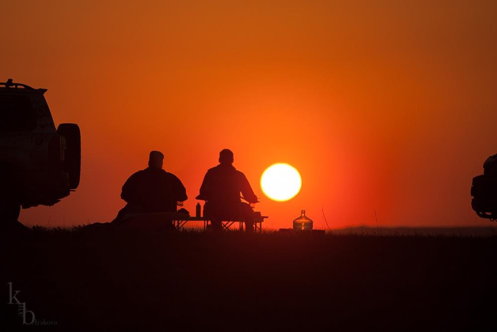В итоге помойка растянулась почти до заката. Мытый Гриша большей частью экипажа двинулся обратно на ночевку на Чапаевский пруд, мытый Тема, пока мыли Гилса, с Яной и Таней съездили посмотреть на еще одно кладбище, а ближе к закату, когда наконец-то всех домыли, двумя уже экипажами мы поехали смотреть закат над Эльтоном.