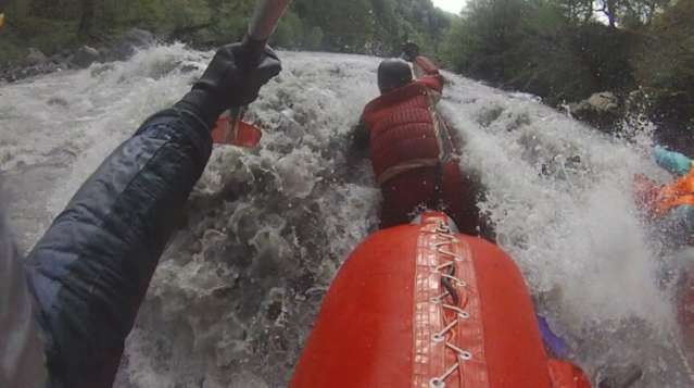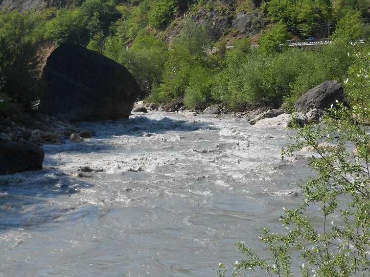 3. Несмотря на то, что локальных ключевых препятствий(из пройденных) на маршруте не так много: на Риони- порог «Древний мост» 4 к.с., порог «Мост» 5 к.с., порог «Мост-2» 5 к.с., на Цхенисцкали – участок сплава от пос. Лентех до Цагери 4 к.с., порог «Окуреши» – 5+ к.с., каньон «Прорыв»- 4 к.с., самому фону этих рек в условиях весеннего паводка можно поставить твердую 4к.с., а маршрут квалифицировать как 5к.с.. Как и на всех реках Кавказа и Закавказья можно отметить высокую скорость течения, что в совокупности с большим весенним расходом рек и протяженностью сплава( пройдено порядка 180 км) и определяет заявленную категорию сложности.