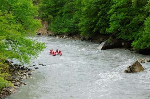 4. При наличии машины сопровождения определенную сложность представляет поиск съезда машины к реке к стоянке, место которой и определяется возможностью подьезда машины. На сплав по Риони можно закладывать три дня( даже с учетом прохождения Уцерского каскада). Сплав по Цхенискали( без Лентехского каньона) от трех до четырех дней. Пороги «Зуби» и «Окуреши» отличаются достаточной протяженностью и особой мощью в условиях весеннего сплава. Возможность береговой