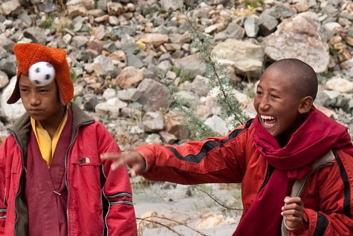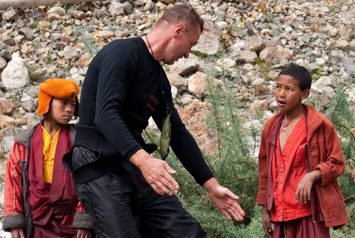 Как только мы пришвартовались у подножия монастыря, сразу же с серпантина ведущего к монастырю, посыпались стайки ребятишек в монашеских одеяниях. Облепили каты, разглядывают, улыбаются. С ними вместе пришло несколько старших, явно для пригляда за молодежью. В отличие от Непала, особой назойливостью пацаны не обладали. И уж тем более ничего не клянчили. Воспитание!