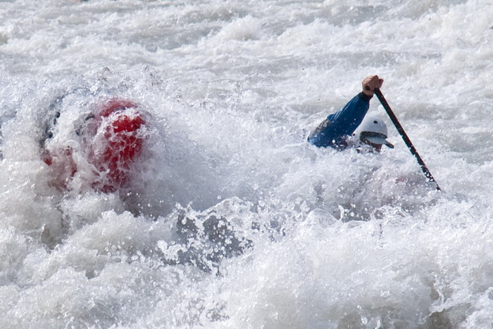 В одном из порогов на выходе пупындру прижало к камешку. Такого интересного события фотографы не ожидали и не успели развернуть штативы и телевики. Носовой Игорь с годами отработанным движением, пулей слетел внутрь ката. Остальные как-то вяло попереглядывались подергались, как бы удивляясь: «Как такое вообще могло с нами произойти?» и сползли с прижима.