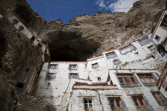 Центр монастыря Пуктал находится в пещере, расположенной высоко в крутой скале. Именно это место делает его отличным от других монастырей Ладакха. Большая часть монастыря сделана из веток и глины.