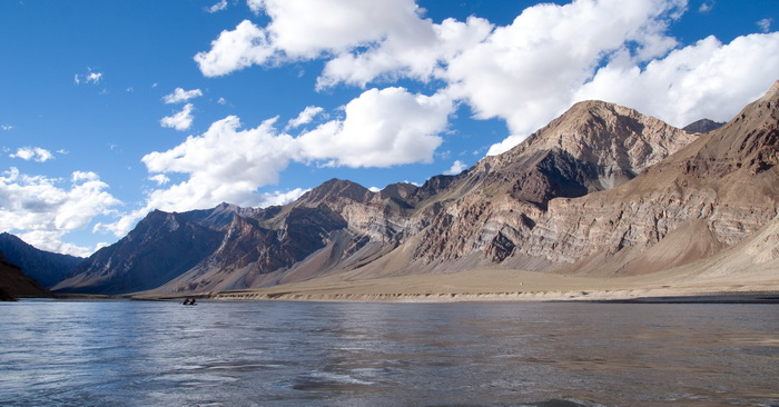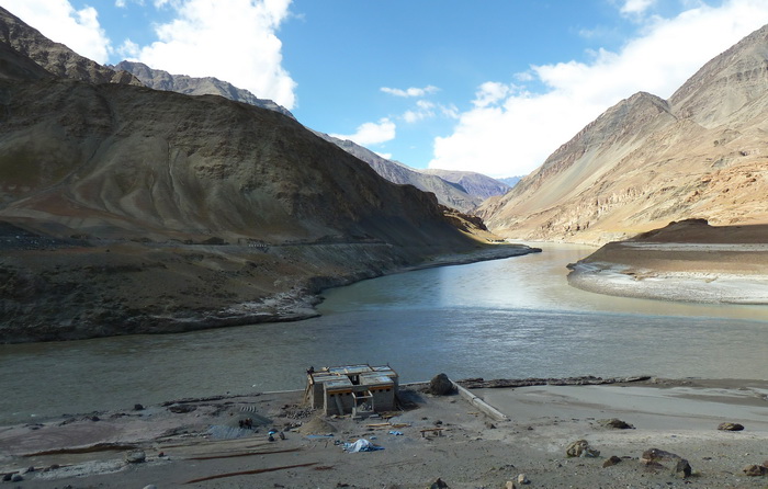 В последний день сплава по Занскару встали на воду около 9 утра и очень быстро дошли до слияния с Индом. Горы расступились, открыв перед нами глобальные и завораживающие просторы долины великой реки Инд.