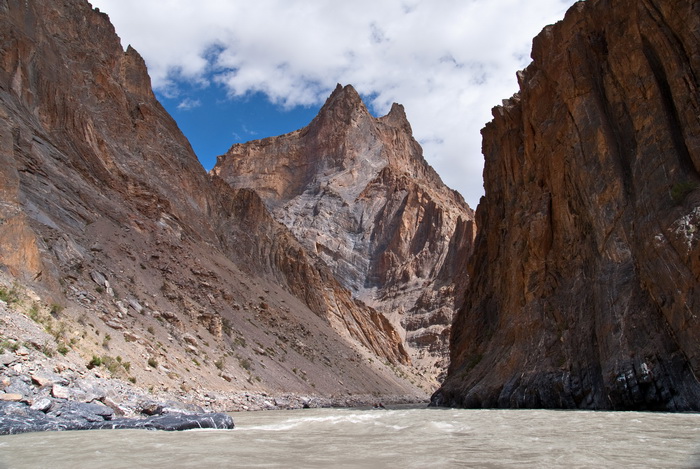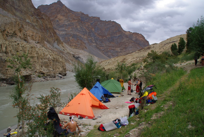 Во второй половине дня начались порожки повеселее, солнце скрылось за высокими скалами и стало прохладно. Поскольку до Инда, по жпэске, оставалось совсем мало – мы предпочли заночевать в ущелье Занскара, чтобы не бомжевать в многолюдной и обжитой долине Инда.