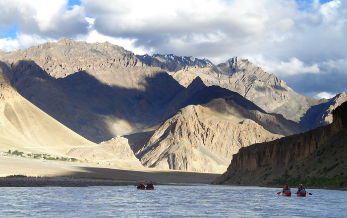 Ближе к вечеру мимо нас проплыли утрешние каякеры, их оказалось трое: европарочка и местный гид. Они подивились нашим судам. Сэфети-каякер справедливо заметил, что на наших катарафтах будет весело только на Инде. По глазам девушки было видно, что она влюблена в обоих мужчин сразу, поэтому мы не стали разбивать своим хлебом-солью влюбленную троицу и помахали им в след платочками…