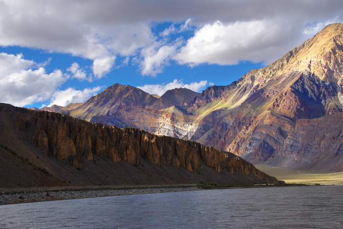 После Падума Тсарап Чу разбивается на кучу проток, которые лишь через 6 км соединяются в Занскар. Естественно, увлеченные фотовидеосъемкой, мы сразу «потерялись» по разным протокам и встретились лишь на Занскаре. Занскар, по моим ощущением, был чуть меньше, чем Тсарап Чу. После слияния было не меньше 200 кубов. До самого вечера нам предстояло любоваться на сногосшибательные пейзажами долины Занскара. Дул сильный ветер, нагоняя пыль и песок в глаза.