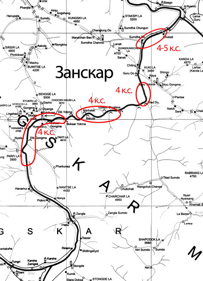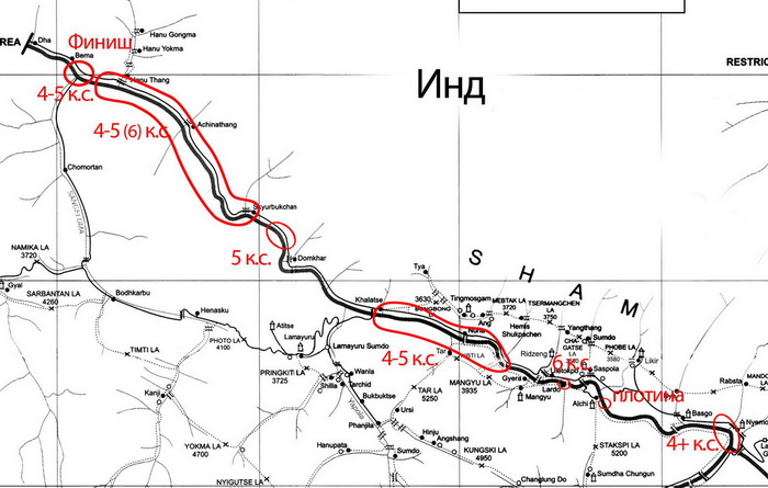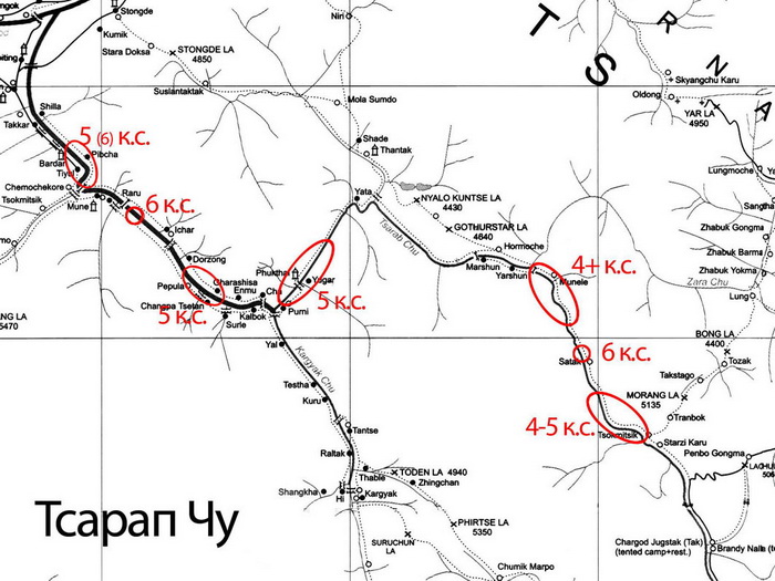 Менее подготовленным группам можно рекомендовать начинать сплав с реки Занскар от д. Падум. В этом случае маршрут по рекам Заснкар и Инд с обносом нескольких препятствий на Инде, будет соответствовать сильной пятерке и позволит избежать трудоемких обносов непроходимых мест на реке Тсарап Чу.
