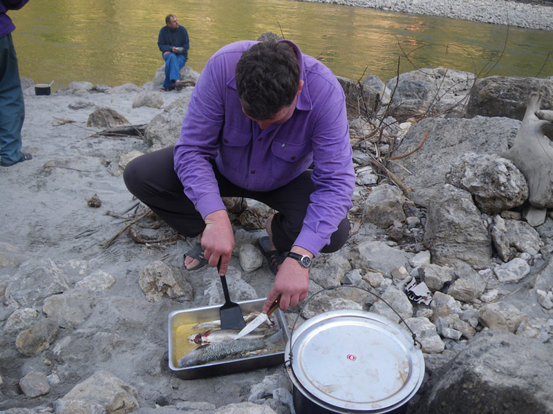 Непальские реки не зря славятся обилием рыбы. Рыбка на завтрак.