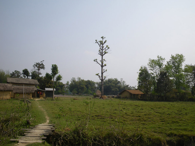 На равнине находится заповедник Бардия охраняющий слонов, носорогов, тигров, леопардов, олений и т.д., а люди на его территории живут вот так.