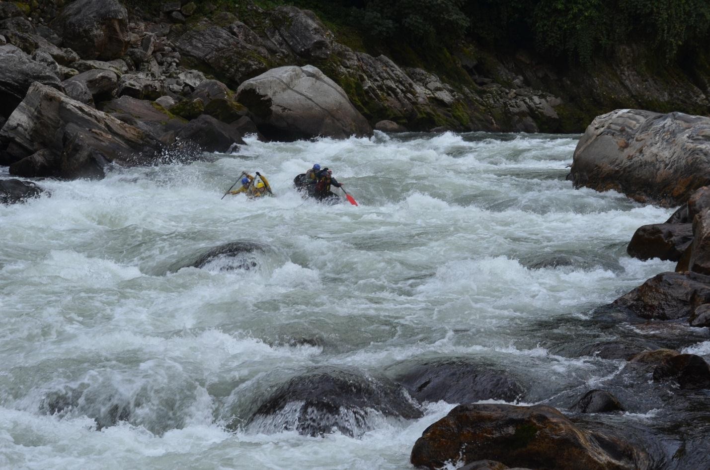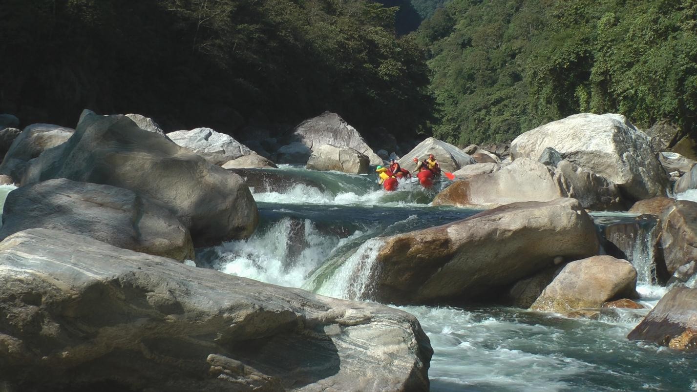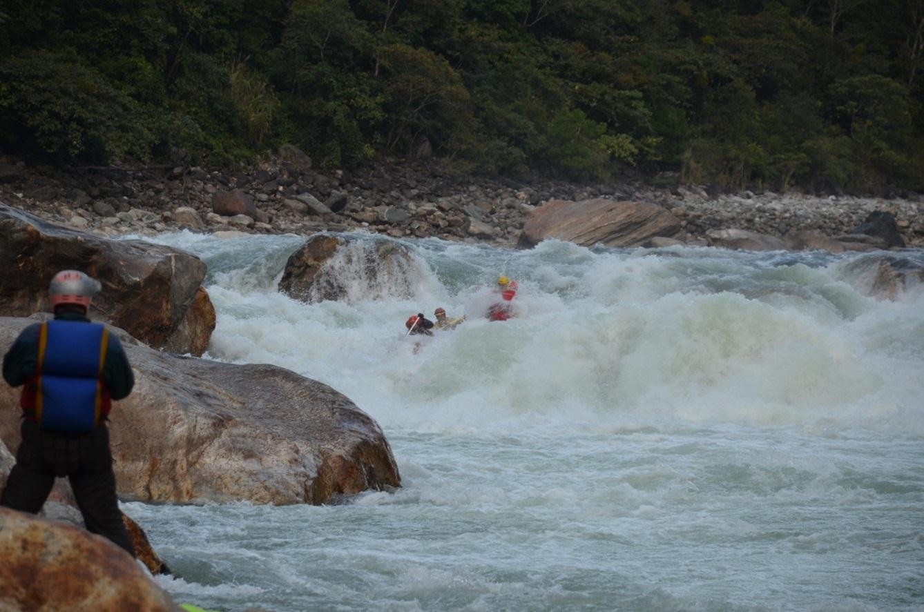 Группа успешно прошла интересный, сложный маршрут шестой категории сложности в Северо-восточной Индии, в южных отрогах Гималаев. Мы справились с основной задачей: пройти спортивный участок реки Дибанг, одной из сложнейших рек штата Аруначал Прадеш. Начав сплав на высоте 1240 метров при расходе воды порядка 25-30 кубов, за восемь с половиной рабочих дней мы скинули по высоте почти 800 метров, пройдя ~ 60 километров, причем расход на финише составлял уже под сотню кубов. Несмотря на относительно небольшой километраж сплав по Дибангу без всякой натяжки можно отнести к полноценному маршруту высшей категории сложности. Даже на сегодняшний день спортивный участок реки прошло считанное количество групп зарубежных каякеров, и мы можем смело заявить, что были первыми россиянами, отработавшими участок реки от поселка Anini до поселка Etalin.