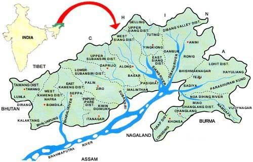 Штат разрезается рекой Брахмапутрой, которая спускается с Тибета, прорезая Гималаи и образуя широкую долину на низких высотах, и рекой Лохит. Округа (дистрикты) штата соответствуют долинам рек – притоков Брахмапутры, которые разрезают территорию штата, делая ее труднопроходимой. Наша экспедиция проходила по дистриктам Верхняя долина Дибанга и Нижняя долина Дибанга.