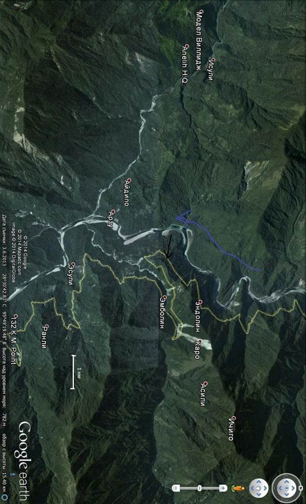 Нитка маршрута . г. Москва- перелет в г.Дели – перелет в г.Дибругарх – заброска в верховья р. Dibang до пос.Anini — сплав по р. Dibang от пос.Anini до нового автомобильного моста – выброска в г.Дибругарх — перелет через г.Дели в Москву.