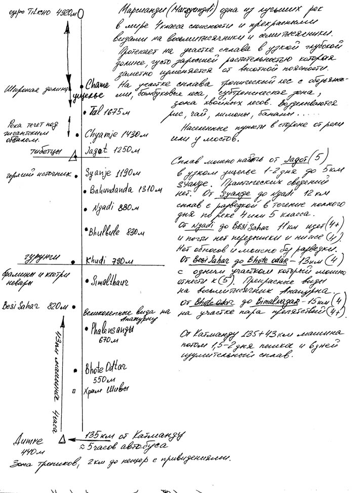 Описание реки Марсианди (Непал), ноябрь 2004