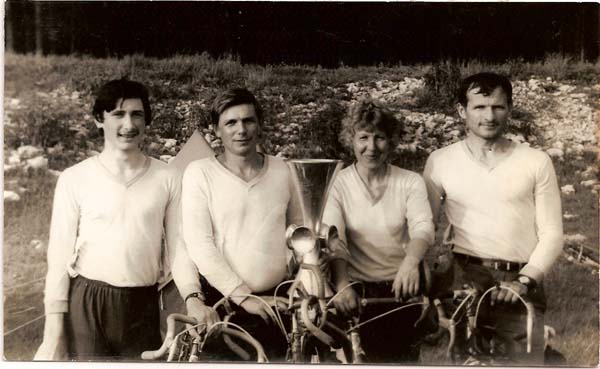 Крым, т/б «Соколиное», победитель Всесоюзного слёта сельских ДСО - команда т/к «Алькор» г. Рязань. Слева направо: Хильченко Н.Н. (тренер), Виктор Мазуркин (капитан), Валерий Мироненко, Вера Букина, Иван Дикун, Григорий Румянцев.