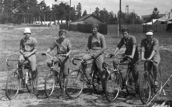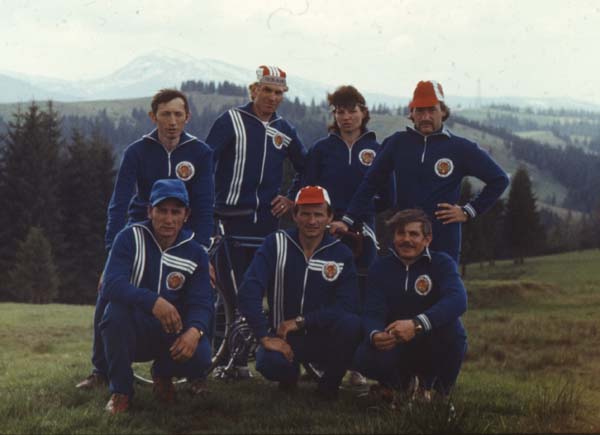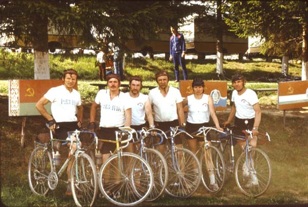 На старте велоралли сборная РСФСР-5 (г. Рязань). Слева направо: Иван Дикун, Виктор Мазуркин, Валерий Мироненко, Николай Хильченко, Любовь Васильева, Анатолий Васильев.