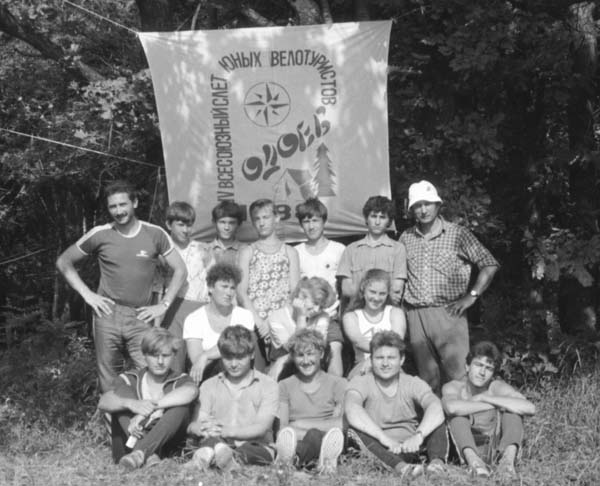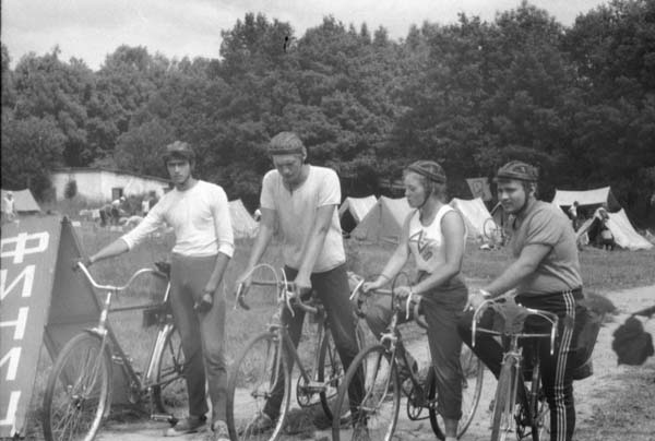 Команда юношей т/к «Алькор», призер IV-го Всесоюзного слета на старте велоралли. Слева направо: Вадим Уразов, Михаил Мирошниченко, Елена Гужвенко, Дмитрий Тимошин.