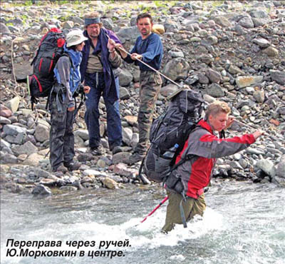 Еще с 80-х годов мой заочный «проводник» по маршруту, участник похода, заядлый турист, а в «мирное» время научный сотрудник Рязанского художественного музея Юрий Морковкин мечтал побывать в краю суровой романтики. Оказывается, и у опытных туристов остаются заветные мечты, исполнения которых приходится ждать не один десяток лет. В этом походе Юрий, как и все, являлся новичком. Искушенным на маршруте не был даже Шагаев, хотя он не раз посещал Камчатку, в том числе знаменитую Долину гейзеров, но в тех местах, куда направлялись, не бывал. Первоначально участники тоже планировали полюбоваться Долиной – эффектным природным аттракционом, но к тому времени, когда вопрос о сборах был решен, селевые потоки накрыли природные фонтаны толстым слоем камней и грязи.