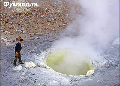 Вулкан Мутновский по своему возрасту – молодой и горячий «субъект». Последний раз он продемонстрировал взрывной характер в 2000 году. Теперь из грунтовых разломов текут мертвые реки с примесью солей и кислот, почва и снег имеют оттенки розового, серого и голубого цвета. Талый снег пахнет арбузом. Вокруг все дымится, грохочет, «плюется» горячей грязью. Ветер подхватывает сухой вулканический песок и пыль и быстро заметает все следы. Дым и пар в обилии источают фумаролы, то есть парообразные выделения из трещин и провалов почвы на стенках и склонах вулкана. Лужи рядом с этими образованиями кроваво-красного цвета. Долину Мутновского сравнивают с Долиной гейзеров. Отличие в размерах. На Мутновском все в миниатюре. Но впечатляет, говорят, не меньше.