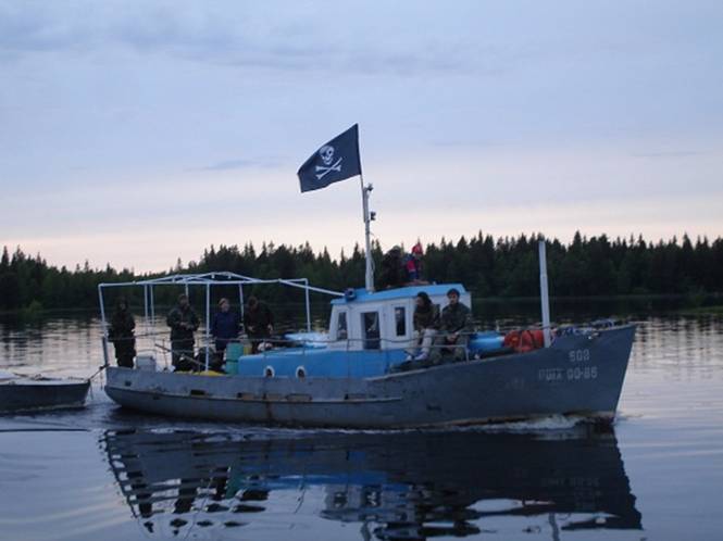 сразу набежала куча мелких «разведчиков», оценивающих расположение и стоимость инструментов и удочек. Парочку «лазутчиков» взяли в плен, после непродолжительной пытки конфетами они раскололись и раскрыли координаты местных самогонщиков. Первый по списку оказался стойким партизаном и долго отрицал свою роль в подпольной деятельности и лишь окончательно убедившись, что мы не из компетентных органов растворил свои закрома
