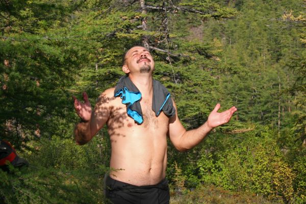 Познакомились с настоящими комарами и мошкой: они залезали везде. Даже в заправленные в ботинки штаны, в уши, нос, пробивались сквозь сеточки накомарников.