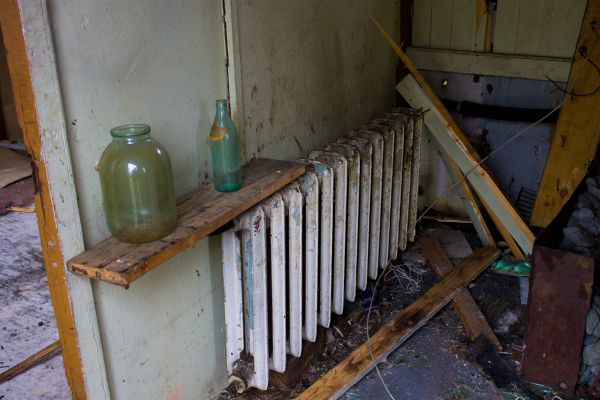 Вокруг были следы покинутой вдруг цивилизации: домики- вагончики с кроватями, на которых остались лежать матрасы, мыльницы, банки от консервов.