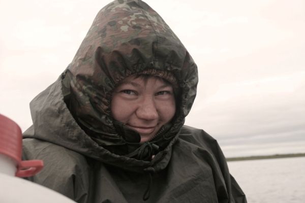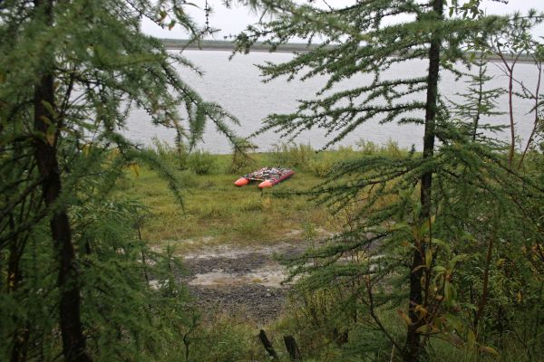 До следующей ночевки никаких особенностей не было. Стали попадаться моторные лодки у зимовеек. Ночевали за 15 км. до деревни Новой (N71 44 47.3 E100 56 22.9). Лил непрекращающийся сильный холодный дождь. Стоянка была у очень хорошей зимовки. Часть группы решила ночевать в палатке рядом с домом, а часть – в самом доме. Протопили печку и высушили все, что было мокрым.
