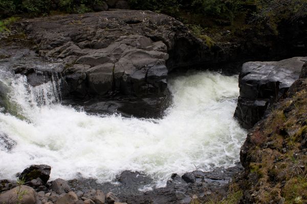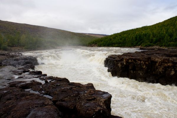 Но надежным ориентиром водопада его считать нельзя, так как при мощном половодье и ледоходе его может смыть. Ситуацию усложнил непрекращающийся уже сутки дождь, который поднял уровень воды и усилил течение. Примерно за 1,5 км перед водопадом шивера и сильный прижим к правому берегу.