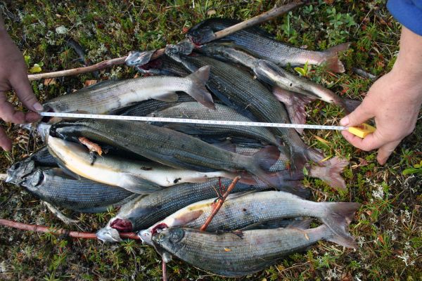 По пути ловим рыбу. Сиг. Делаем сугудай и солим икру.
