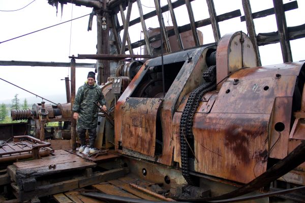 Сделали остановку у заброшенной буровой. (№ 70 19 29.5 Е95 57 25.1), взобрались на нее.