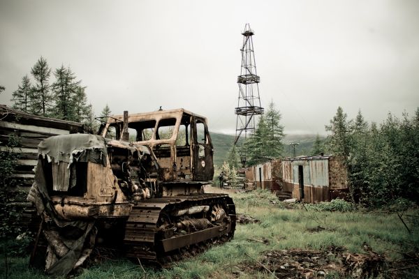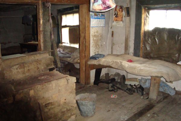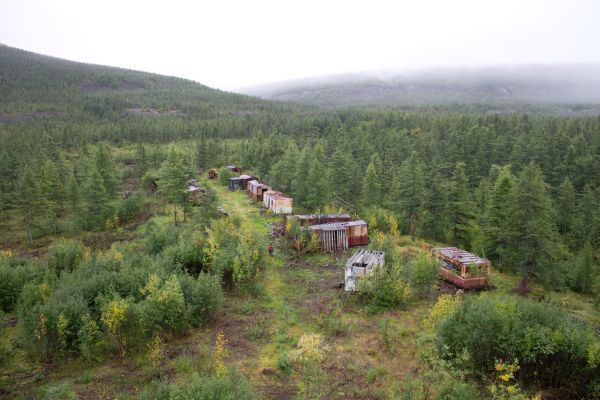 Вокруг были следы покинутой вдруг цивилизации: домики- вагончики с кроватями, на которых остались лежать матрасы, мыльницы, банки от консервов.