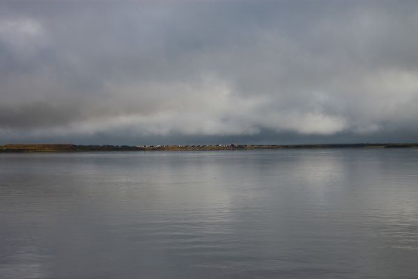 От фактории Камень до пос. Волочанка примерно 80 км. На моторчике преодолеваем это расстояние за один переход. Ночуем, не доходя 5 км до пос. Волочанка, чтобы утром закупиться в магазине. Основную трудность в преодолении данного участка представляют мели в протоках между островов, песчаные косы, пересекающие реку поперек и почти полное отсутствие течения. Часто дует сильный встречный ветер. Встаем на ночевку в устье р. Волочанка (N70 57 04.1 E94 25 33.4). Температура воздуха +13. Идет дождь.