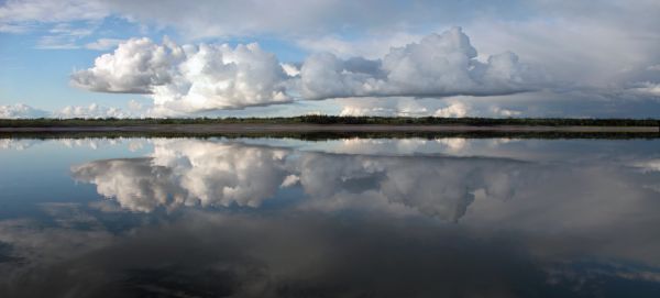 От места ночевки течение р. Аян слабое, река имеет озеровидные расширения. Ветра нет. Температура воздуха +19. Солнце светит до полудня, с обеда набегают тучи, но дождя нет.